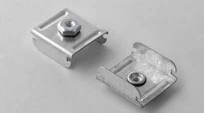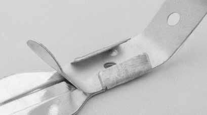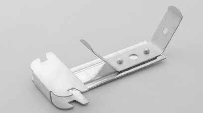 Per struttura a “T” per fibra minerale, gesso alleggerito, plafoni in alluminio, etc. nella realizzazione di controsofitti in fibra. Corpo acciaio zincato - molla in Deltatone. Dritto con molla.