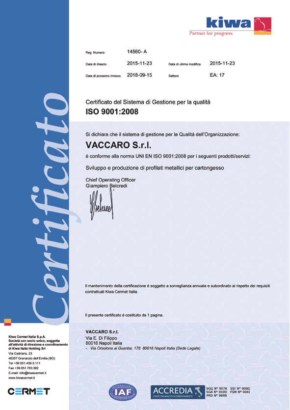 L’esperienza acquisita negli anni e la flessibilità dei propri impianti hanno portato la Vaccaro ad essere leader nelle produzioni di profilati in Campania, mentre un’attenta organizzazione della rete vendita ha permesso la commercializzazione dei prodotti in tutto il circuito nazionale.
